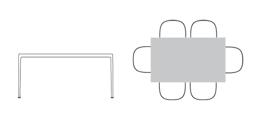 • 60" Table seats 6 armchairs (26") or 6 armless chairs (20")