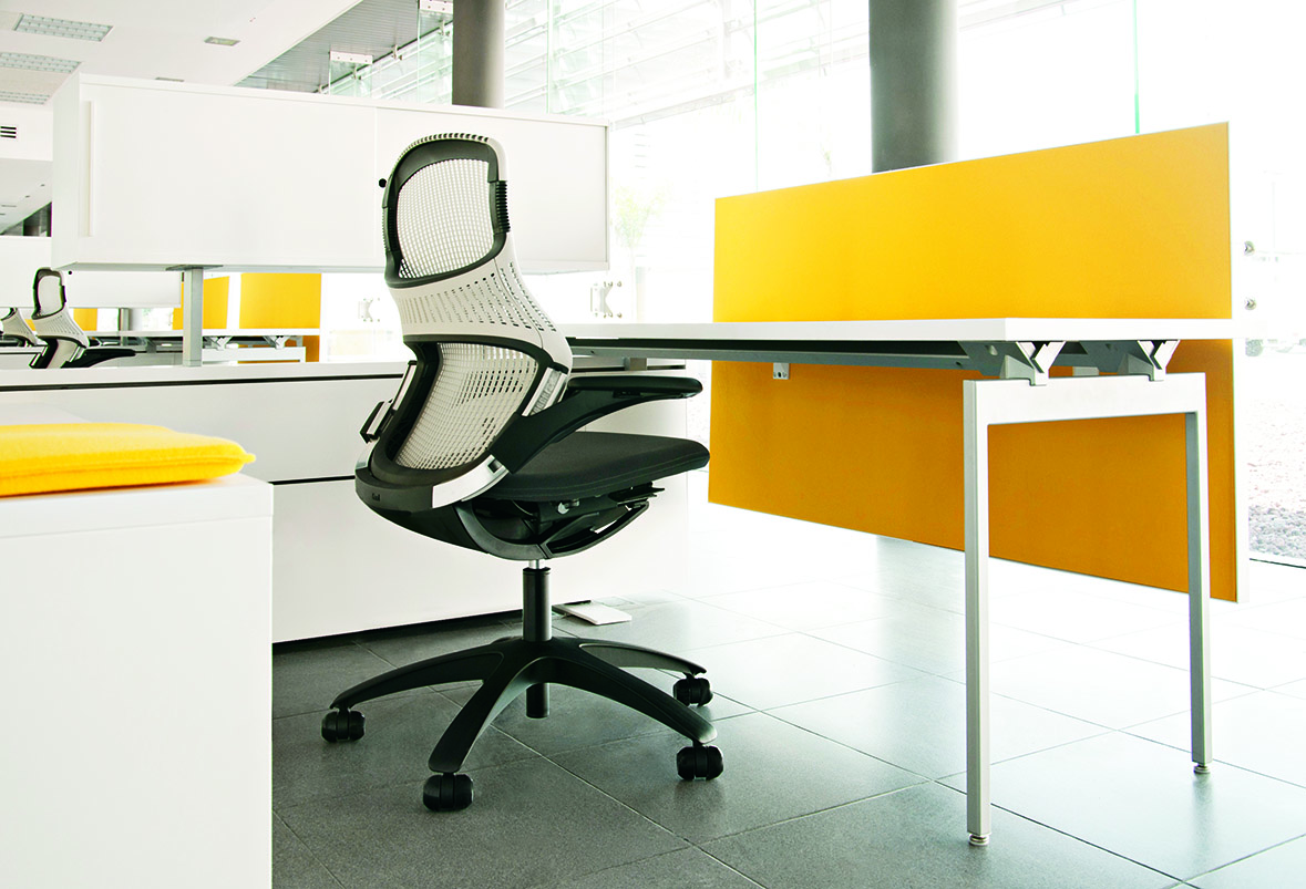 Antenna Desk Screens provide partial enclosure for desks and height-adjustable tables offering seated or standing visual privacy. Desk screens attach to the rear of the worksurface in two horizons and two modesty heights to provide varying levels of enclosure above or below the worksurface.