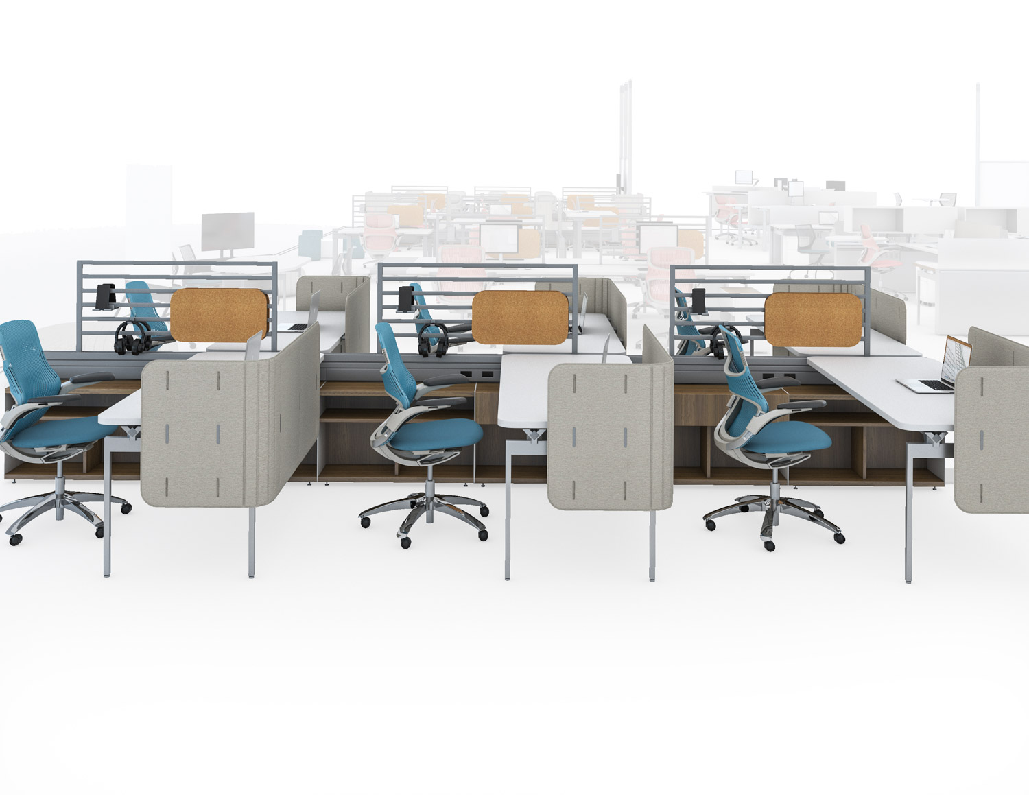 The freestanding, linkable or mobile Power Beam gives planning flexibility and range to address the ready-to-change mentality of today’s workplace. Continuous channels in the top and sides of the beam enable off-module freedom to position screens and task lights, or to support worksurfaces.