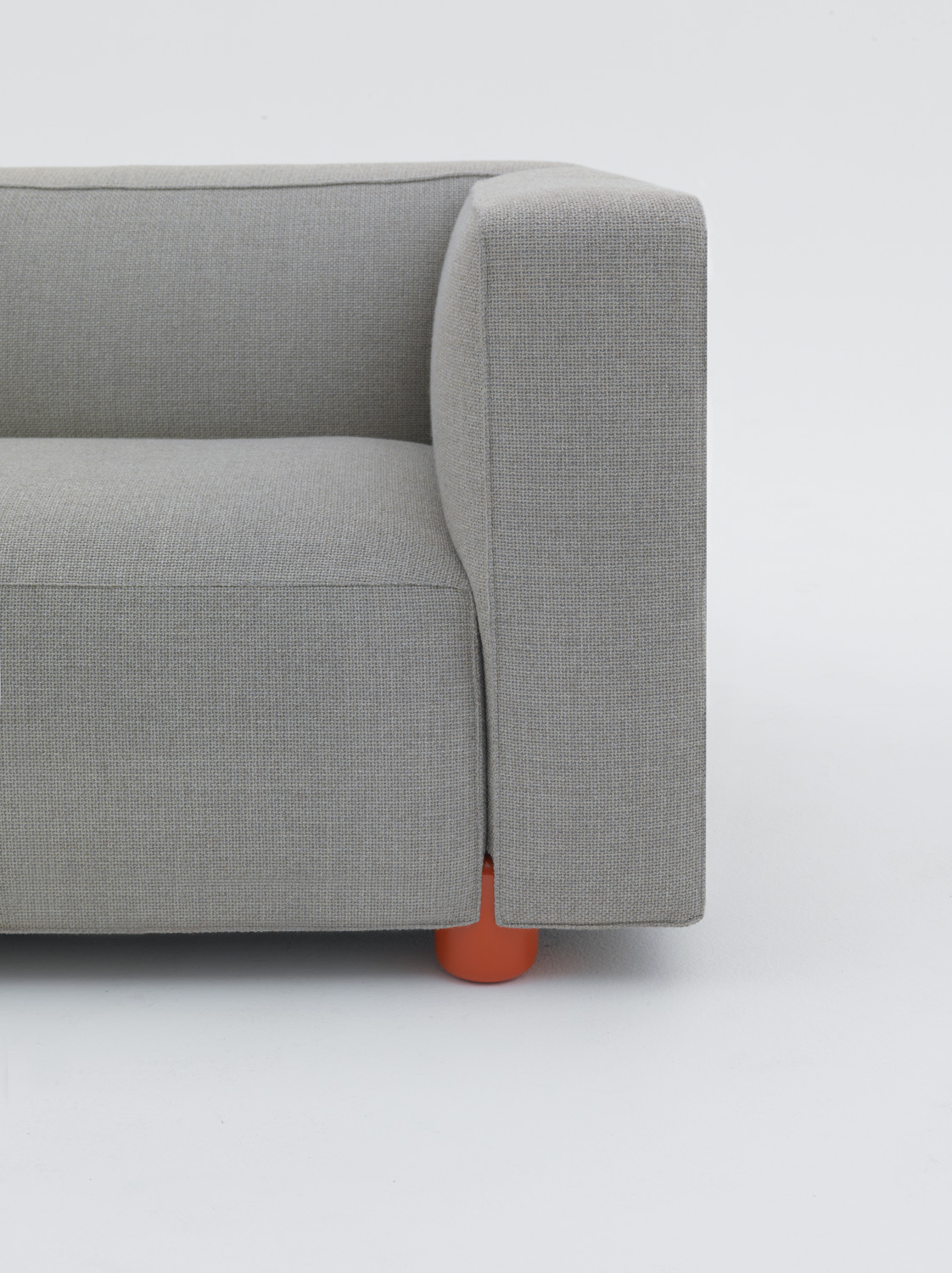 The chairs’ t-shaped legs are both a source of structure and support, fitting between the joints of the cushions to serve the dual purpose of foot and connector. The result is seamless design that does away with the frame, creating the appearance of a wholly integrated piece of furniture composed of several different components. For this reason, Osgerby contends, “The foot is really the icon of the sofa. It fits between each one of the arms and the seats, which are the architectural building blocks of the sofa."