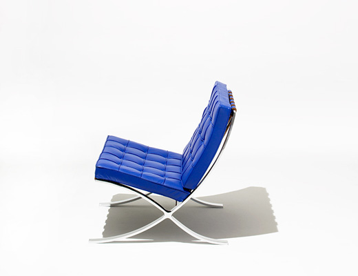Through masterful proportioning and planning, Mies created a rhythmic and entirely unprecedented space, which elevated industrial-age materials to a level of grace never before achieved. Inside, Mies included chairs and stools conceived as a resting place for the King and Queen of Spain. Determined to create a chair worthy of royalty, Mies is thought to have based the designs, with their signature crisscross frames, on the campaign chairs of Ancient Rome. Mies: “I feel that it must be possible to harmonize the old and new in our civilization.”