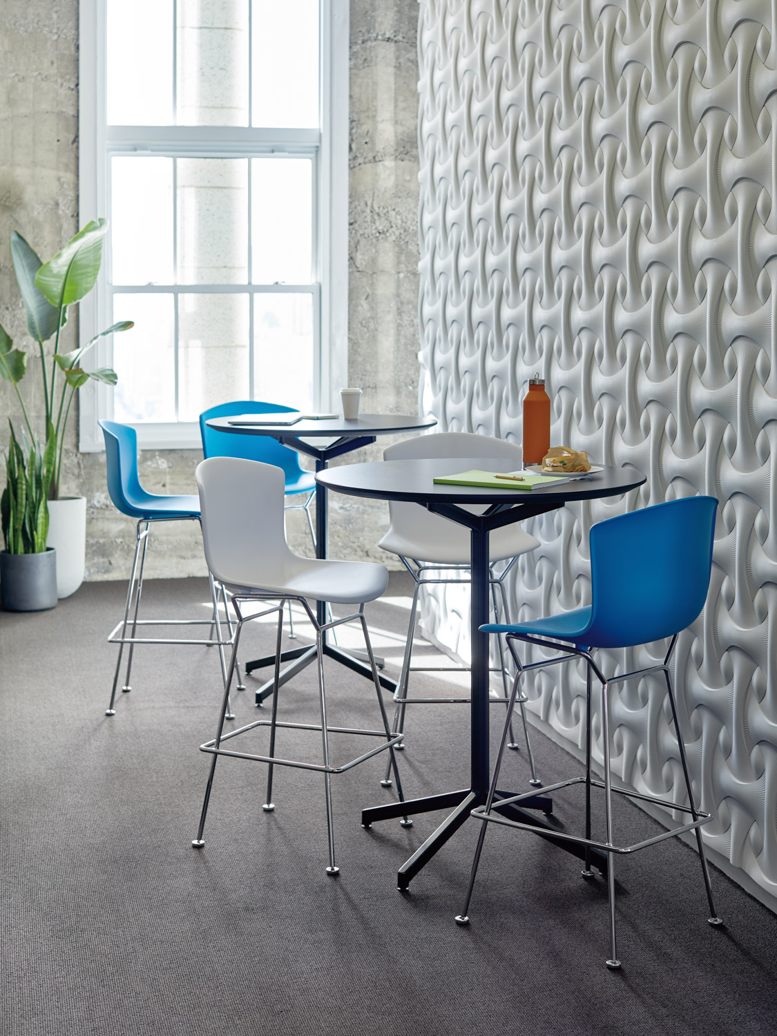 17372 | Student Union | Bertoia Molded Shell Barstool, Pixel Table
