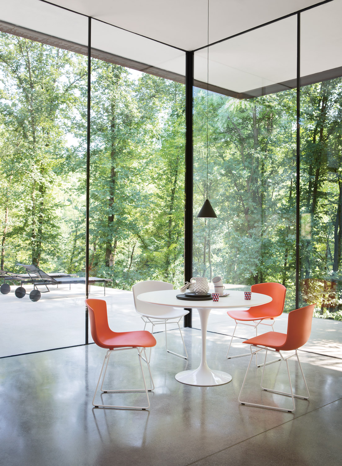 17745 | Bertoia Molded Shell Side Chair with Saarinen Outdoor Dining Table
