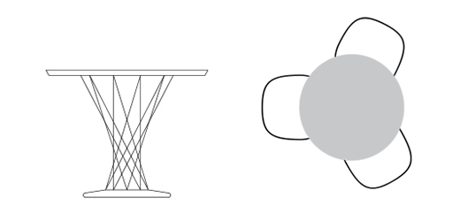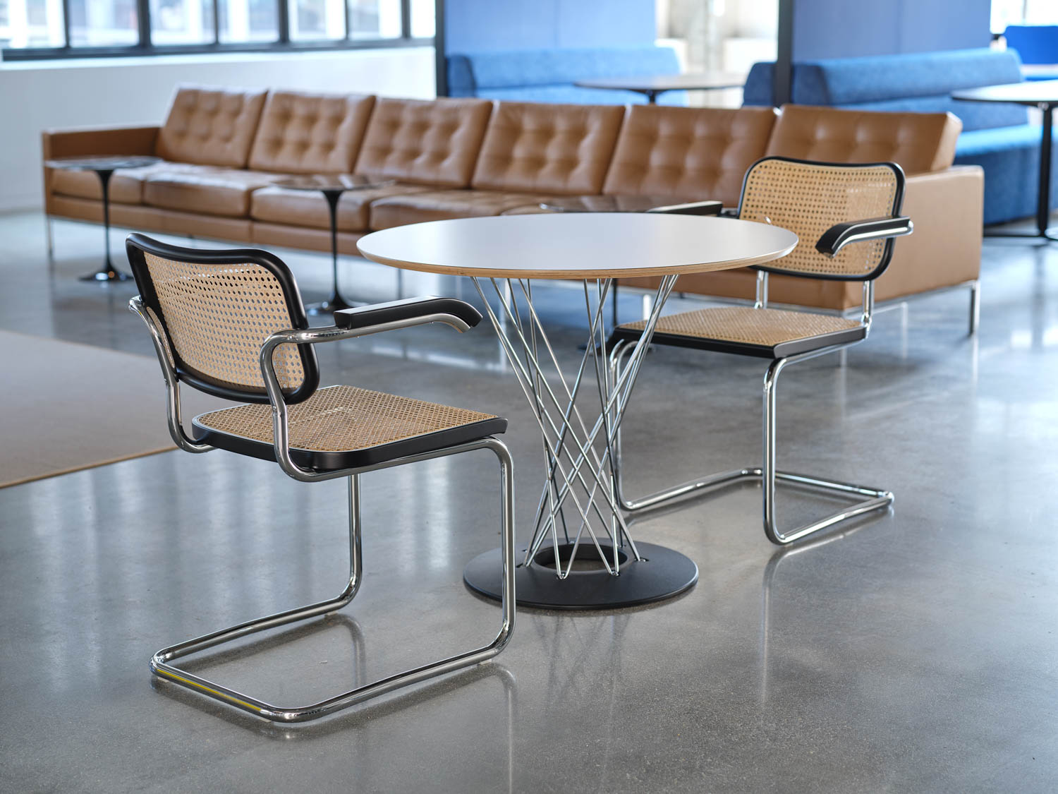 After making the switch from plastic to wire and scaling the design to table size, Knoll marketed the Cyclone alongside the Bertoia wire chair collection for several years. The table was taken out of production in 1974, but was reintroduced in 2003. In collaboration with the Noguchi Foundation, the design is meticulously reproduced using Noguchi’s original drawings.