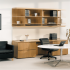 Prior to the pioneering approach of Florence Knoll and the Knoll Planning Unit, executive offices in America were nearly all planned the same way. Florence Knoll described this standard layout in her 1964 “Commercial Interiors” entry for the Encyclopedia Britannica: “In such an office there was always a diagonally-placed desk, with a table set parallel behind it, a few chairs scattered around the edge of the room, and a glassed in bookcase. The table behind the desk generally became an unsightly storage receptacle.” Seeking to create a space better suited to the executive’s primary function — communication — Florence reconsidered the illogical layout from an architectural perspective. She eliminated the imposing desk, replacing it with the more inviting table desk, placed parallel to the back wall. Storage was moved to behind the table in a matching low credenza.