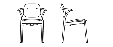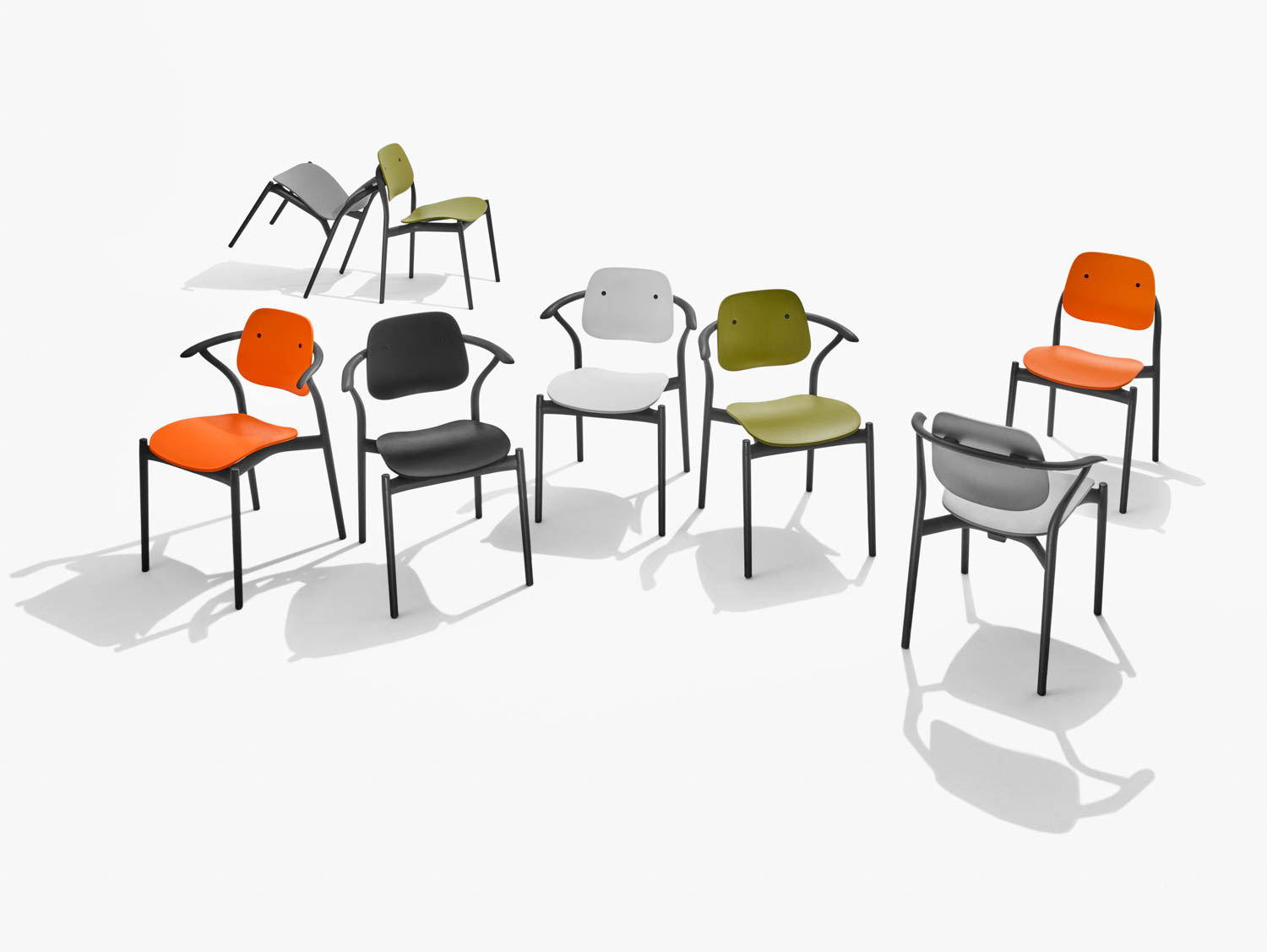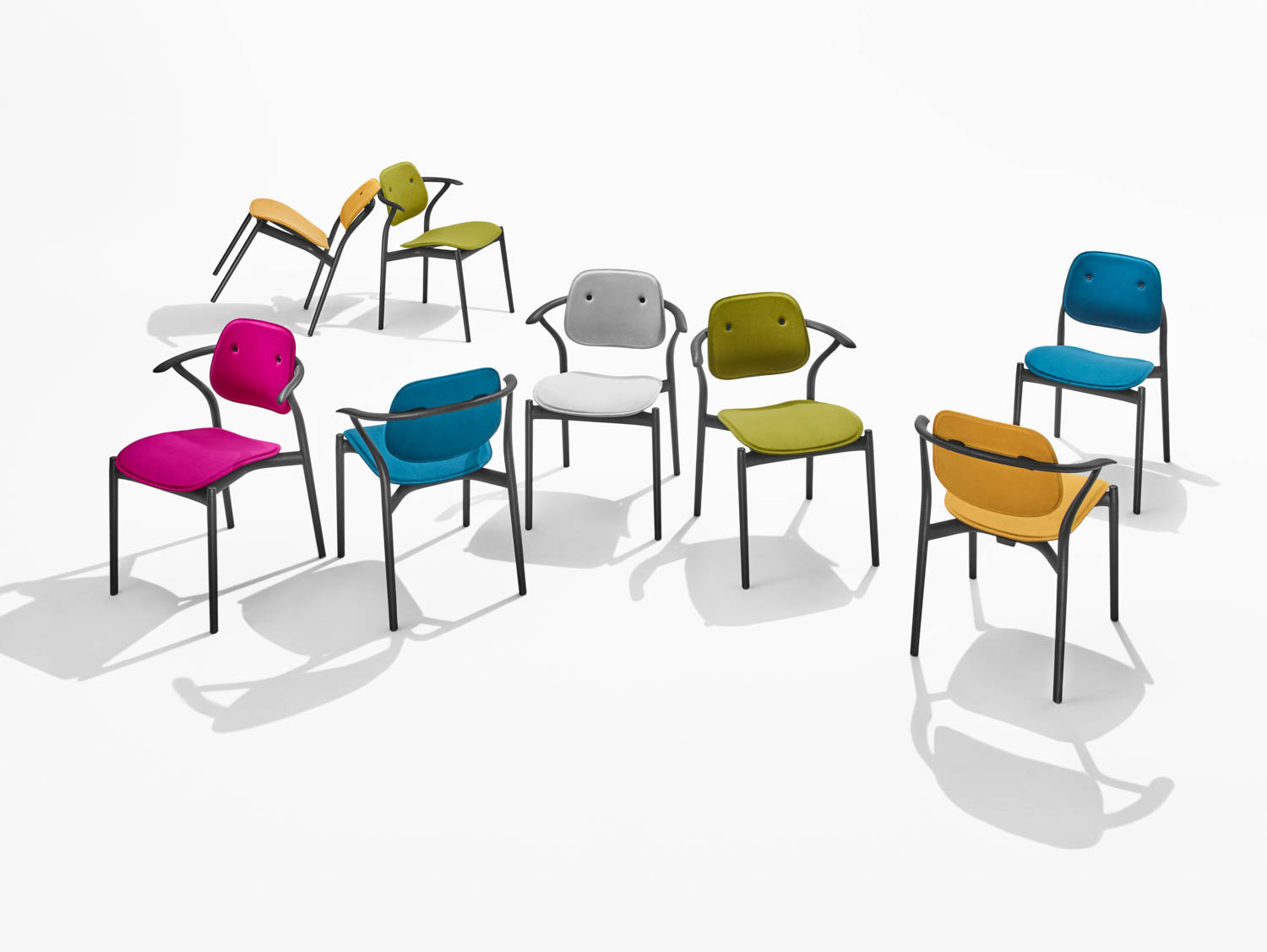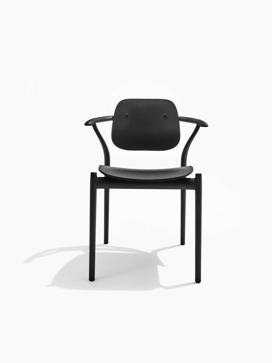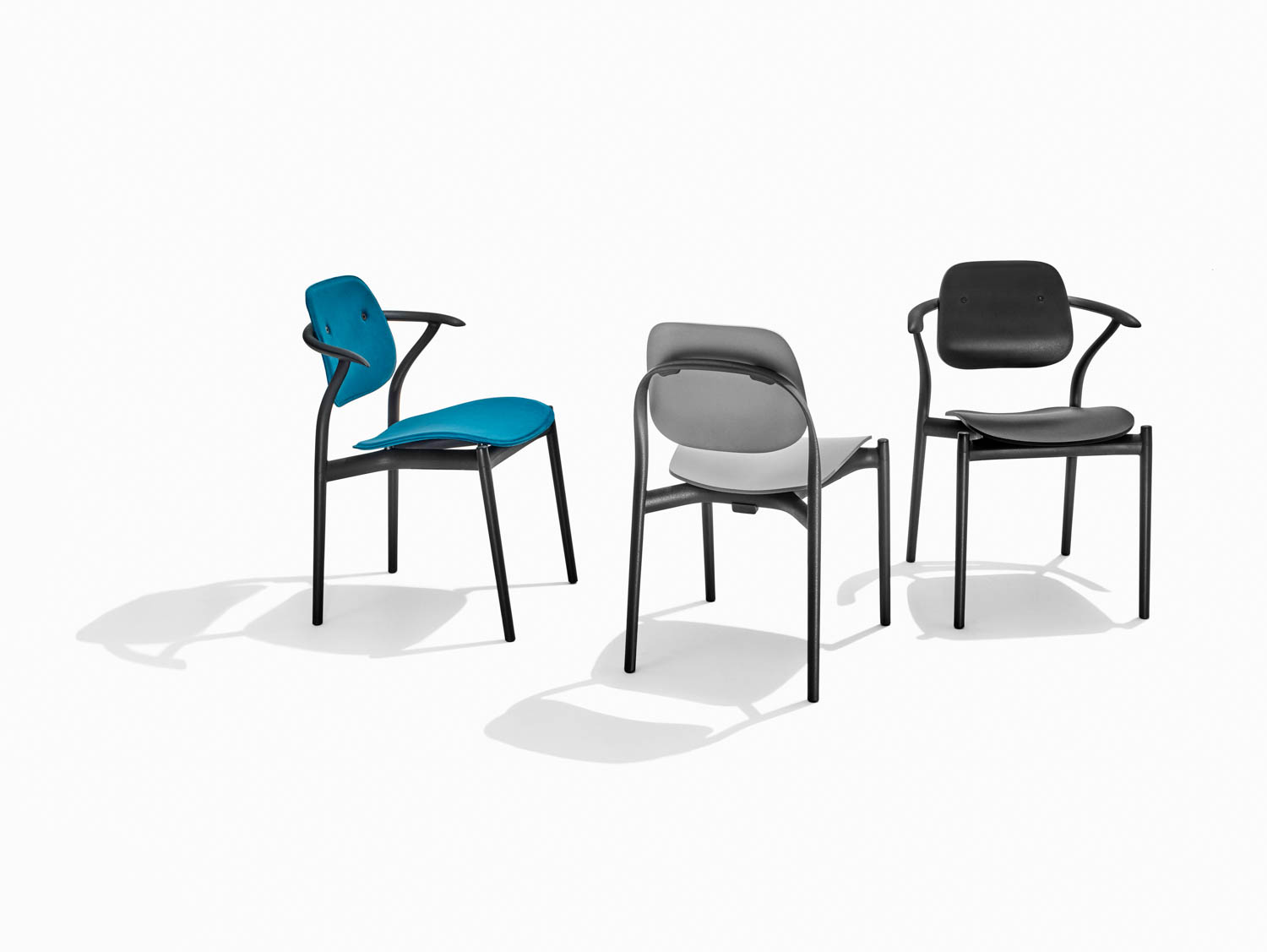 The armchair design in Ini Archibong’s Iquo Café Collection features an elegant, curved silhouette and one continuous frame that’s both light and resilient.