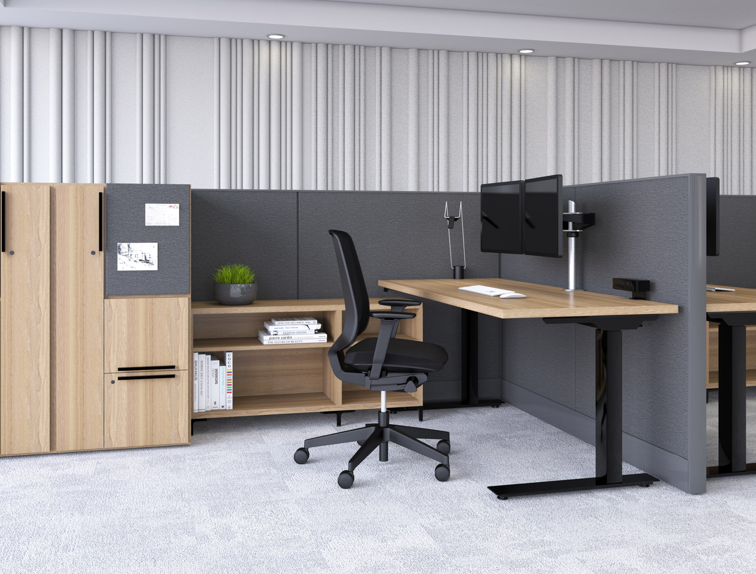 k. stand responds to the needs of today’s office by creating adaptable spaces that support work among groups in all areas of the workplace. k. stand easily accommodates desktop screens along with ergonomic KnollExtra accessories, including monitor arms and task lights.