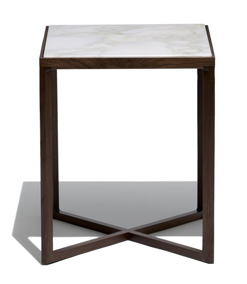 Drawing inspiration from traditional designs, but asserting itself with an industrialized craft aesthetic, Krusin Side and End Tables complement the Krusin lounge and side chairs. Like the chairs, the tables leave no joint unresolved and no angle unconsidered, resulting in a subtle elegance that harmonizes with any setting. The base, available in a broad array of natural woods, with low-sheen and polished finishes, can be paired with a matching wood top or clear glass, leather or a variety of stones.