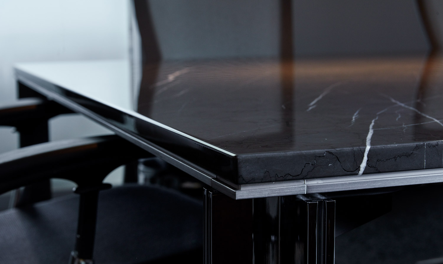The LSM Conference Table Series offers a refined aesthetic through unique engineering that minimizes the base in proportion to the top. The table is distilled to its elemental horizontal worksurface, maximizing knee clearance while creating a sophisticated presence. A multitude of electrical options also make communication and data management simple, while maintaining a clean look and feel.
