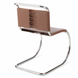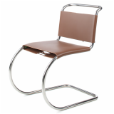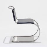It is believed that Mart Stam described his idea—a continuous loop of steel (he used a thinner gauge gas pipe in the earliest versions) with a cantilevered seat—at a meeting of the Werkbund in 1926. In attendance were Marcel Breuer and Mies van der Rohe, both of whom were inspired to design cantilever chairs of their own in the coming months. Mies replaced the right angles on the front legs with a graceful curve which had the advantage of increasing elasticity while preventing material fatigue. Mies first showed the MR 10 and MR20 at the Stuttgart Weissenhof Estate — a seminal Werkbund exhibition, which first brought modernist works to the public, with buildings designed by Peter Behrens, Walter Gropius, Le Corbusier, Mies van der Rohe and others.