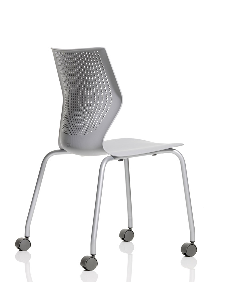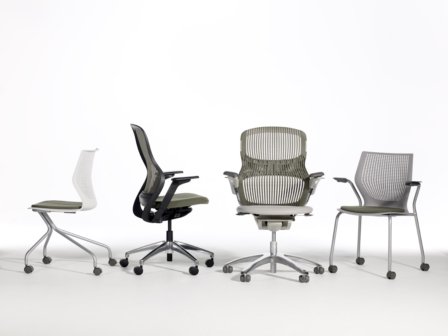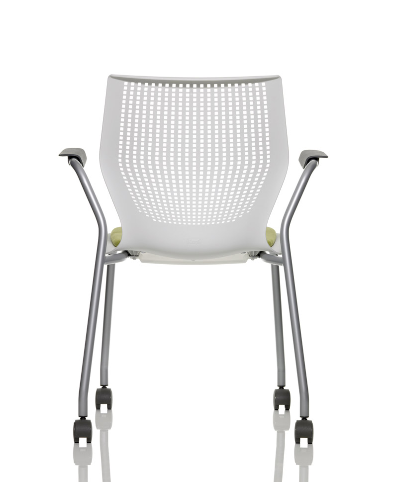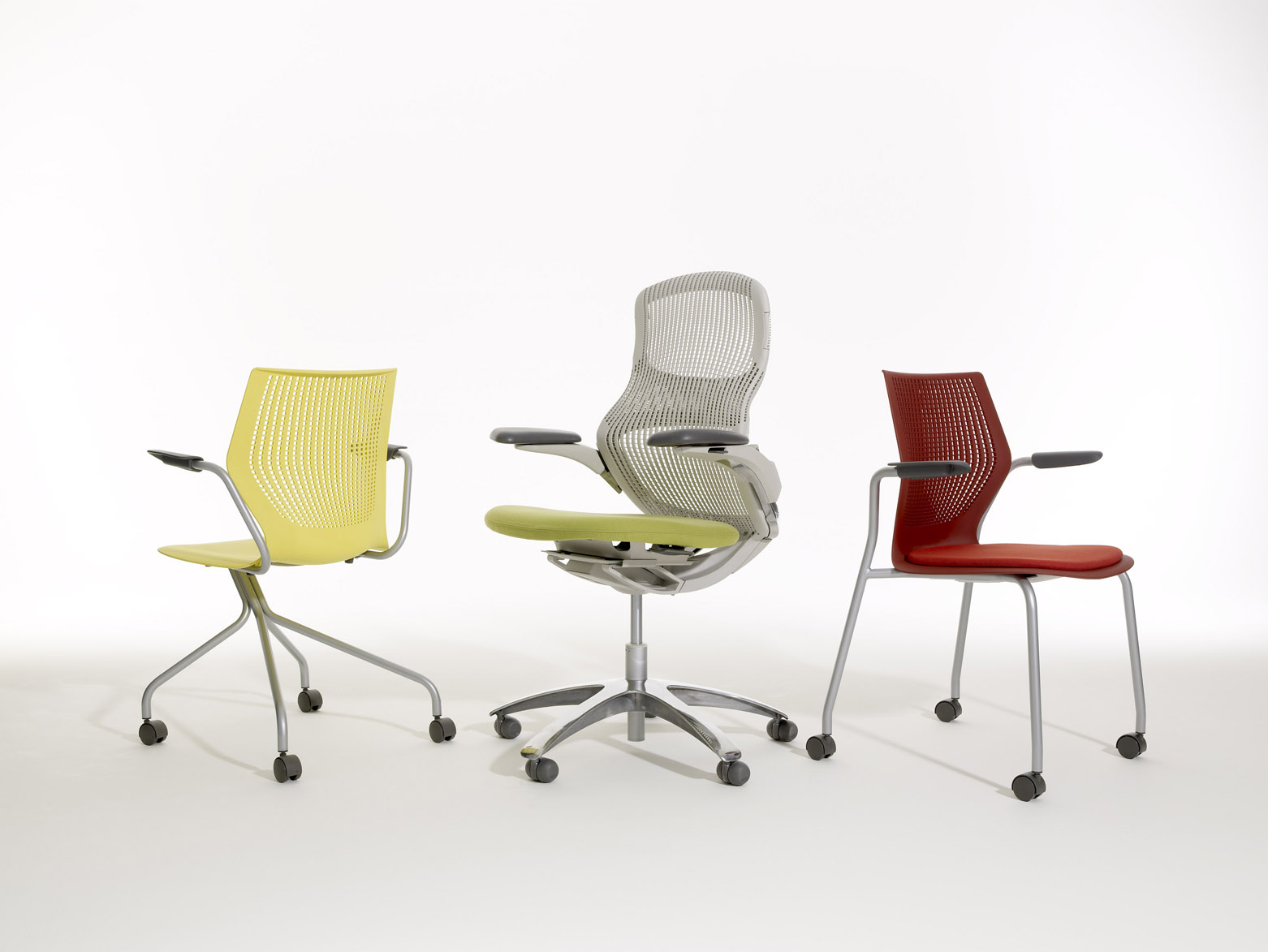 Therefore, each member of the MultiGeneration by Knoll family, which has continued to grow over the last 5 years, is designed to allow for and encourage movement, while still providing adequate support. The shape and material of the shell give the chairs a buoyancy that prevents the user from feeling “locked in” while the arm and leg positions allow for 270 degrees of movement.