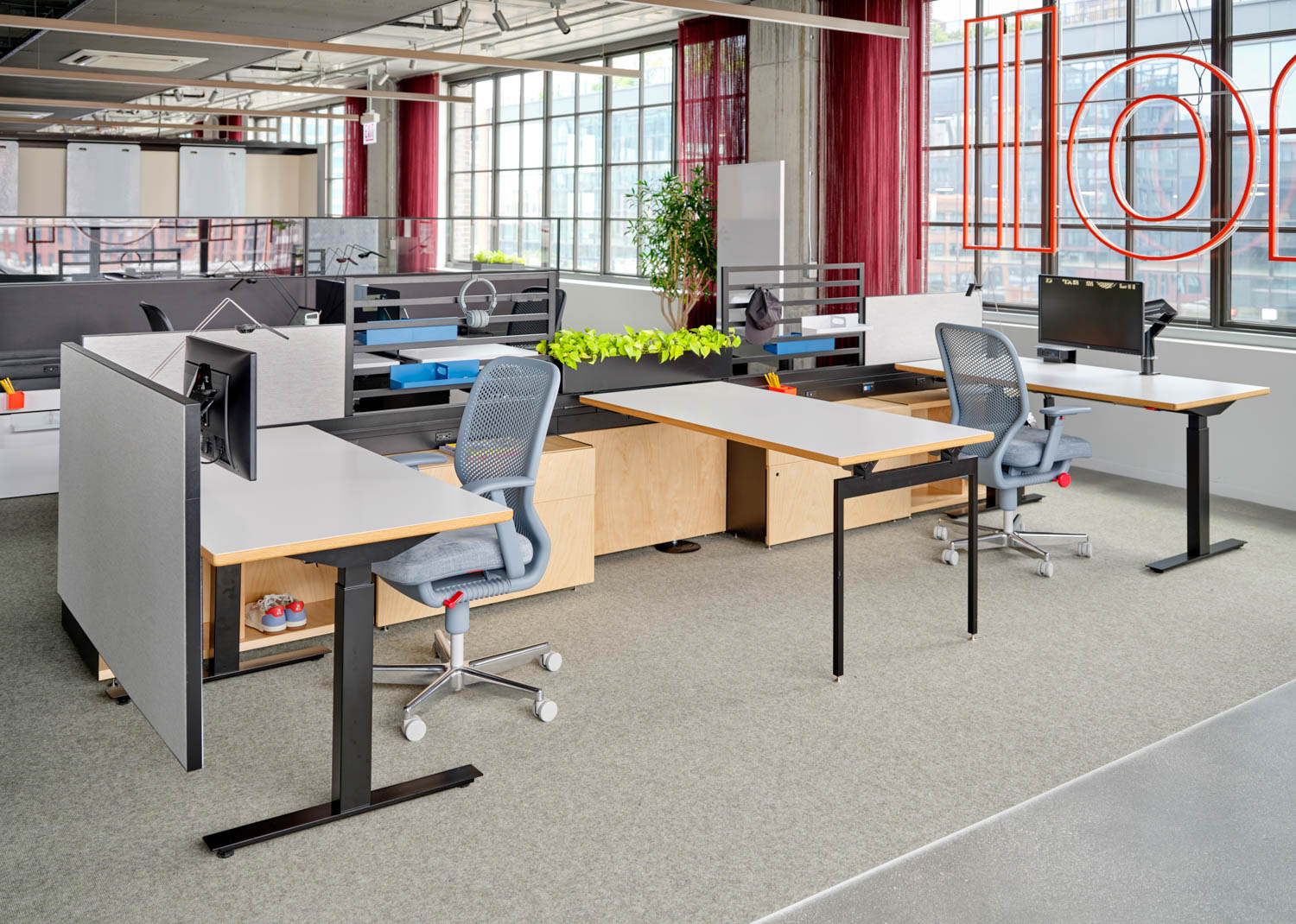 19255 | MillerKnoll San Francisco Showroom with Cove Collection by Knoll Private Workstation, Newson Chair, and Florence Knoll Bench
