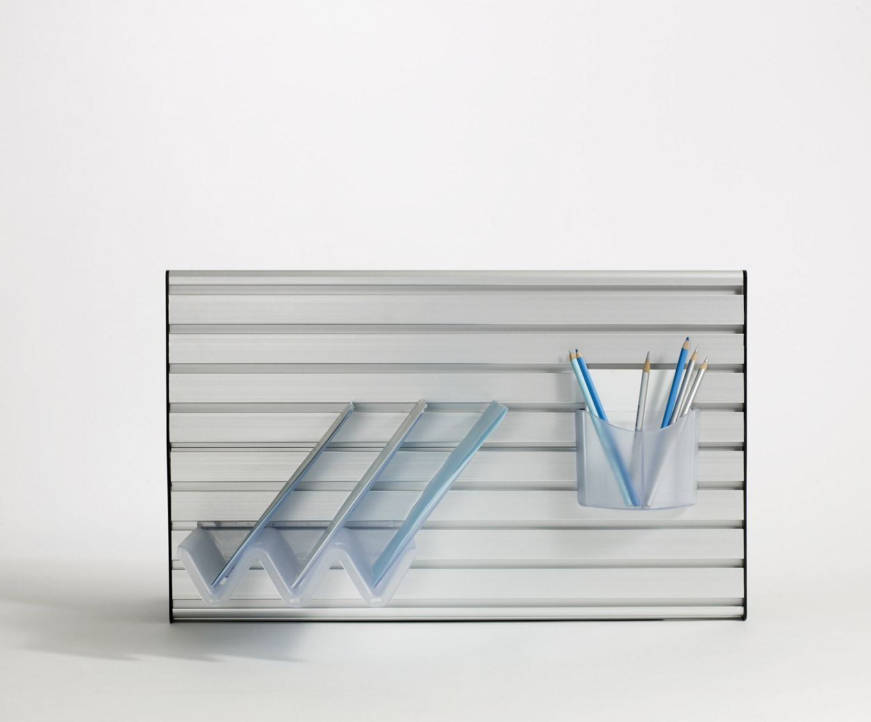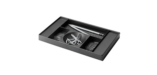 The Orchestra collection of desk accessories and storage solutions is tuned to the different functions, work habits and individuals of the modern workplace. Borrowing from the principles and logic typically reserved for architecture and space planning, Bruce Hannah and Ayse Birsel developed components that create order from chaos.
