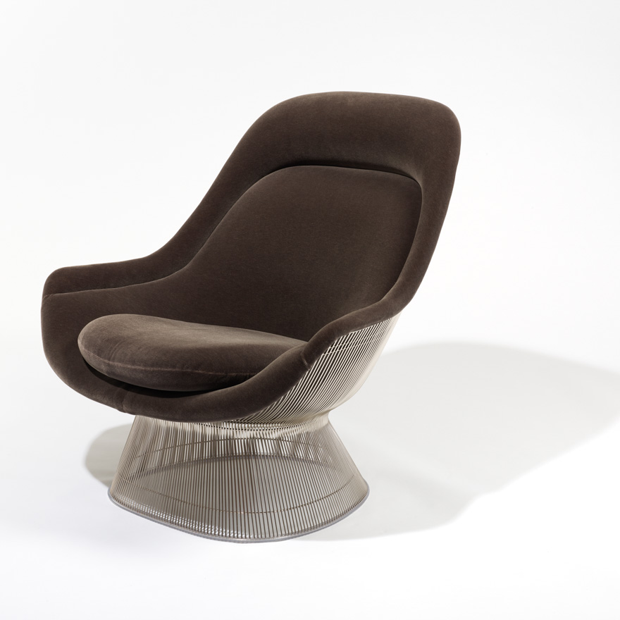 Originally introduced by Knoll in 1966, the Platner Collection is an icon of modern furniture. Platner personally formulated the production techniques for the complicated designs with each chair requiring over a thousand welds and more than one hundred cylindrical steel rods.