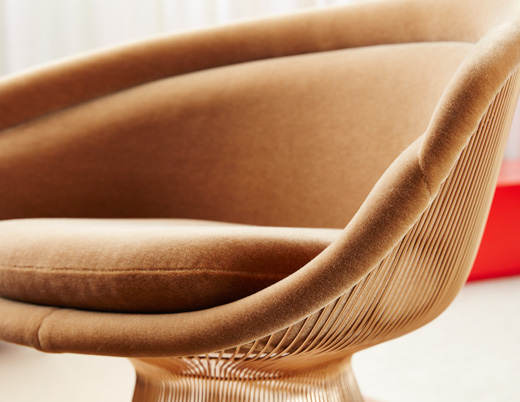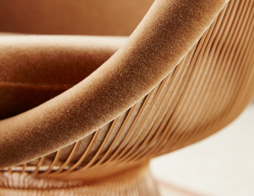 Originally introduced by Knoll in 1966, the Platner Collection is an icon of modern furniture. Platner personally formulated the production techniques for the complicated designs with each chair requiring over a thousand welds and more than one hundred cylindrical steel rods.
