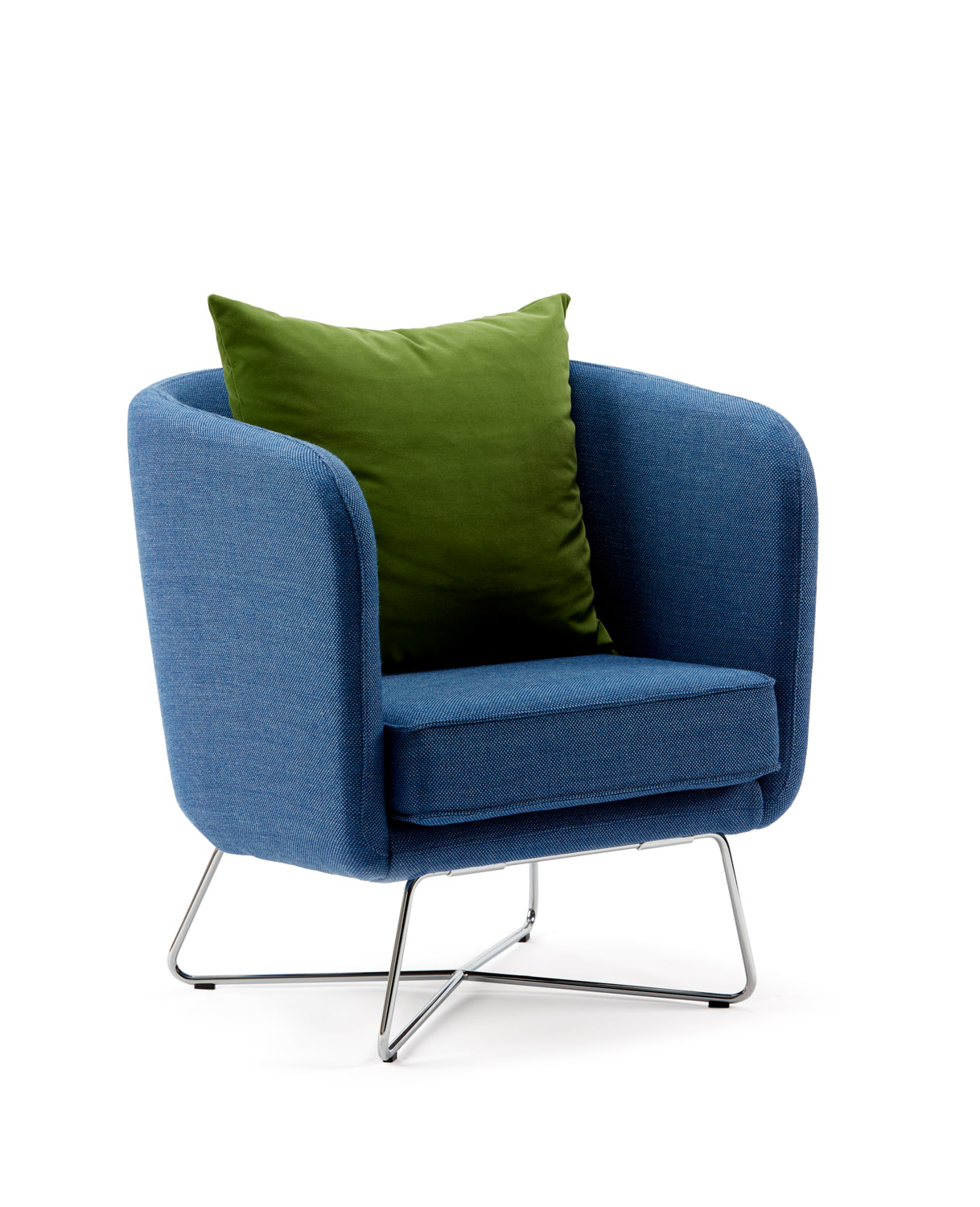 15053 | Rockwell Unscripted Club Chair and Upholstered Seat with Dividends Skyline X Base Table and Antenna Fence