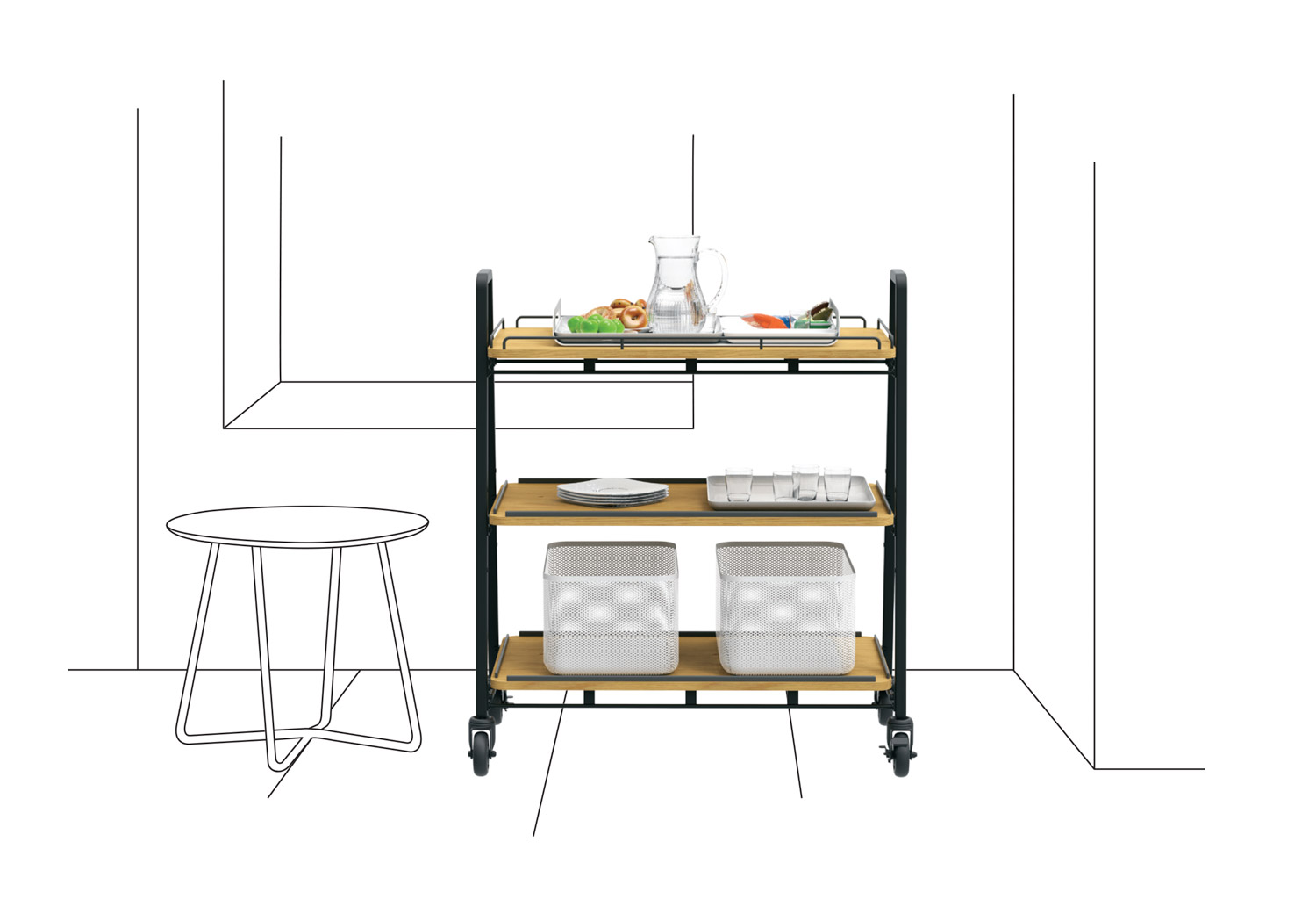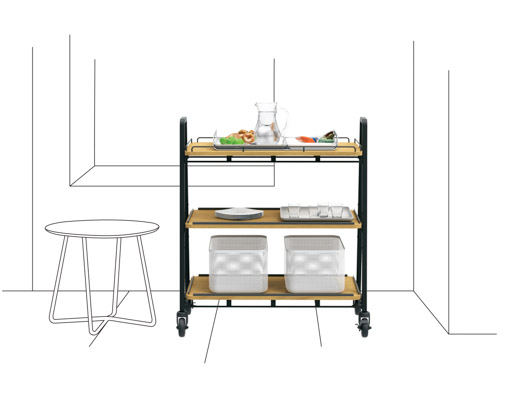 Rockwell Unscripted uses storage as an activator in the workplace, putting inspiration within reach by equipping spaces with easy-access, object-based storage. The hospitality cart brings the provisions (or the party) to you and your team. The mobile storage cart puts your work tools in a convenient place, for the hour or for the day, and provides an impromptu place to perch. Soft storage bins offer deep, partially-concealed storage for your grab-and-go essentials.