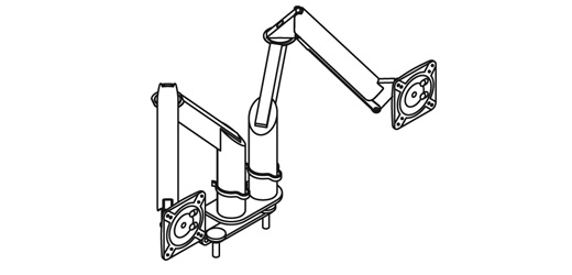 Dual Sapper XYZ offers fluid, independent movement for two monitors mounted to a shared clamp. The inventive design features one-touch adjustability especially critical to the high performance workplace.