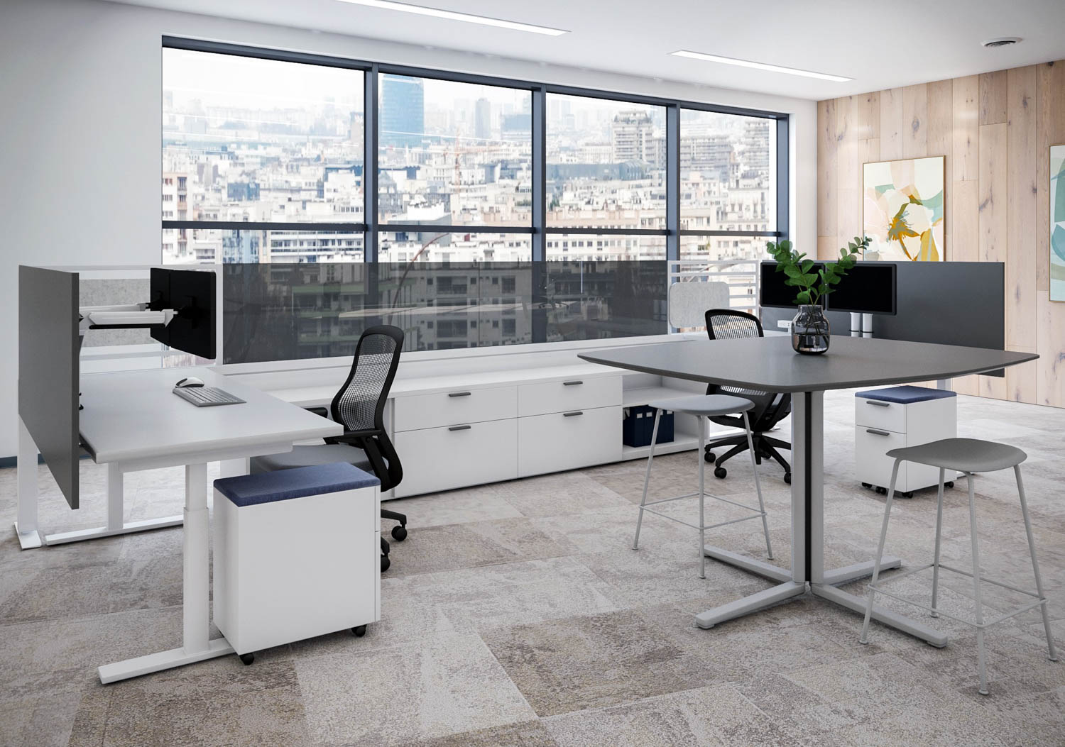 Series 2 Universal Privacy Screens provide space division for focused work while aiding with noise reduction. Series 2 Screens also feature integrated Slatwall that enables users to free up space at the desk by attaching accessory and storage solutions directly to the screen. Easily retrofittable, Series 2 Universal Privacy Screens extend below the worksurface providing a built-in modesty panel.