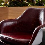 Saarinen was assisted by Don Petitt, of Knoll’s Design Development Group, who introduced several ingenious methods of model making. Together with a Knoll design research team, they worked out the problems arising in production. Full scale models became furniture and, with family and friends acting as “guinea pigs,” the furniture was tested in the dining room and living room of the Saarinen house in Bloomfield Hills.