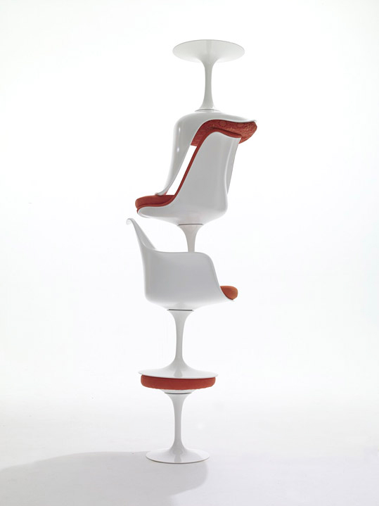 Eero Saarinen vowed to address the “ugly, confusing, unrestful world” he observed underneath chairs and tables -- the so-called "slum of legs." A five-year design investigation led him to the revolutionary Pedestal Collection, including the Tulip Stool.