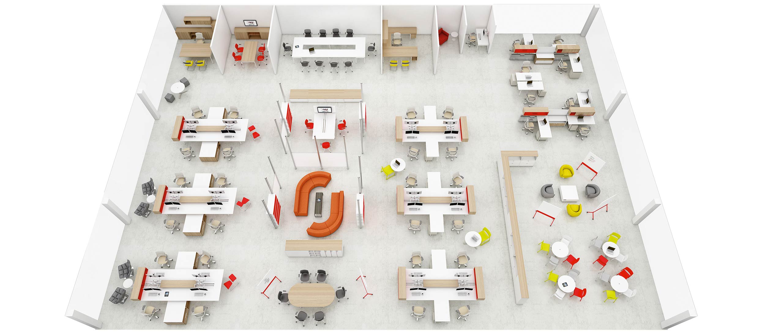 The modern office requires dimensional, dynamic planning that supports a broader range of activities than ever before. Service Wall, Fence, Interpole and Horsepower, in combination with freestanding or height-adjustable tables, or integrated into any system, deliver flexible alternatives to panel-based layouts and support the ever-changing technologies found in today's office.