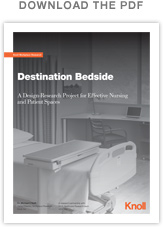 This conclusion is based on a study in which Knoll and HOK jointly investigated the impact of medical-surgical inpatient unit design on quality of patient-centered care (PCC), measured by distractions, correct equipment operation, and walking distances; and by patient outcomes, measured by falls, near falls and pain levels. In a three-phased research program, this project gathered and analyzed qualitative and quantitative data from hundreds of patients and staff that identified beneficial design attributes, conducted problem-solving sessions with nurses, and from these activities developed a design concept that might improve patient outcomes.