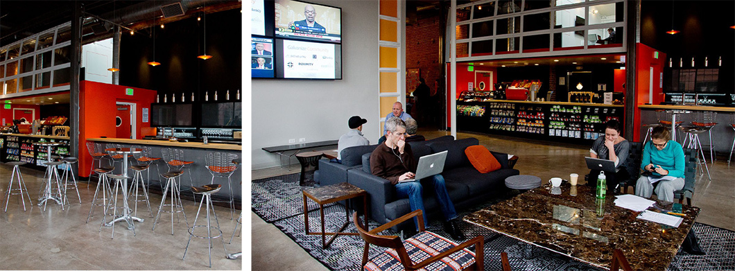 Aptly located in Denver’s historic Rocky Mountain Bank Note Building, which originally printed stock certificates and more recently housed a charter school, the team designed the space to evolve the settings traditionally associated with contemporary grassroots entrepreneurs such as garages or basements. The result is the blending of a fashionable, boutique hotel; a hip café; and an advanced, high-tech office into a single dynamic space.