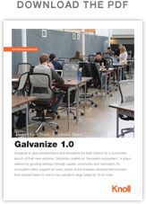 “At Knoll, we are continuously exploring the connection between workspace design and human behavior,” say Kylie Roth, Director of Workplace Strategy at Knoll. “Our partnership with Galvanize is giving us firsthand insight into user response, helping to inform product development and workplace applications.”