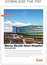 Acknowledging that a modular system was a definite aesthetic shift from the more traditional settings found elsewhere in its system, the Mercy Health team appreciated that the Knoll product solution expressed a permanence and visual appeal that they previously felt was only available in millwork, recalled Carol Crane, Vice President Healthcare and Higher Education for Knoll.
