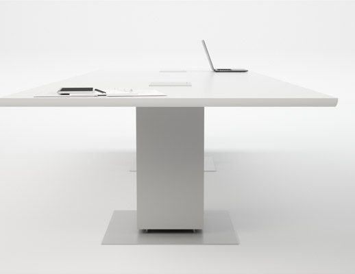 Drum, Peanut, and Rectangular bases house cables and electrical components behind easily removable panels. The signature aluminum Propeller Conference leg easily manages vertical wiring directly to the tabletop.